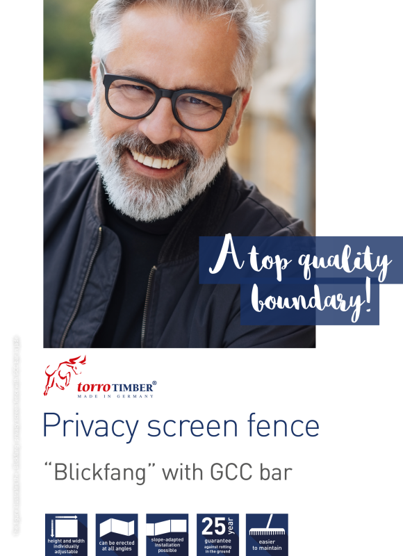 Successfully enjoy a degree of privacy and emphasize features with the “Blickfang” privacy screen fence. Its unusual appearance with marbled, corrugated panels immediately catches the eye. The material is colour-resistant and dirt-resistant. The panels almost clean themselves thanks to the vertical position and weathering. Doors and gates can also be suitably integrated and gradients as well as all types of angles can be tackled without any problems whatsoever. Our posts are also extremely durable – we provide you with a 25-year guarantee against rotting in the ground. In short: The perfect boundary option for your garden!