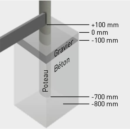 Vous avez le choix de poser les poteaux dans du béton coulé ou sur des plaques de support.