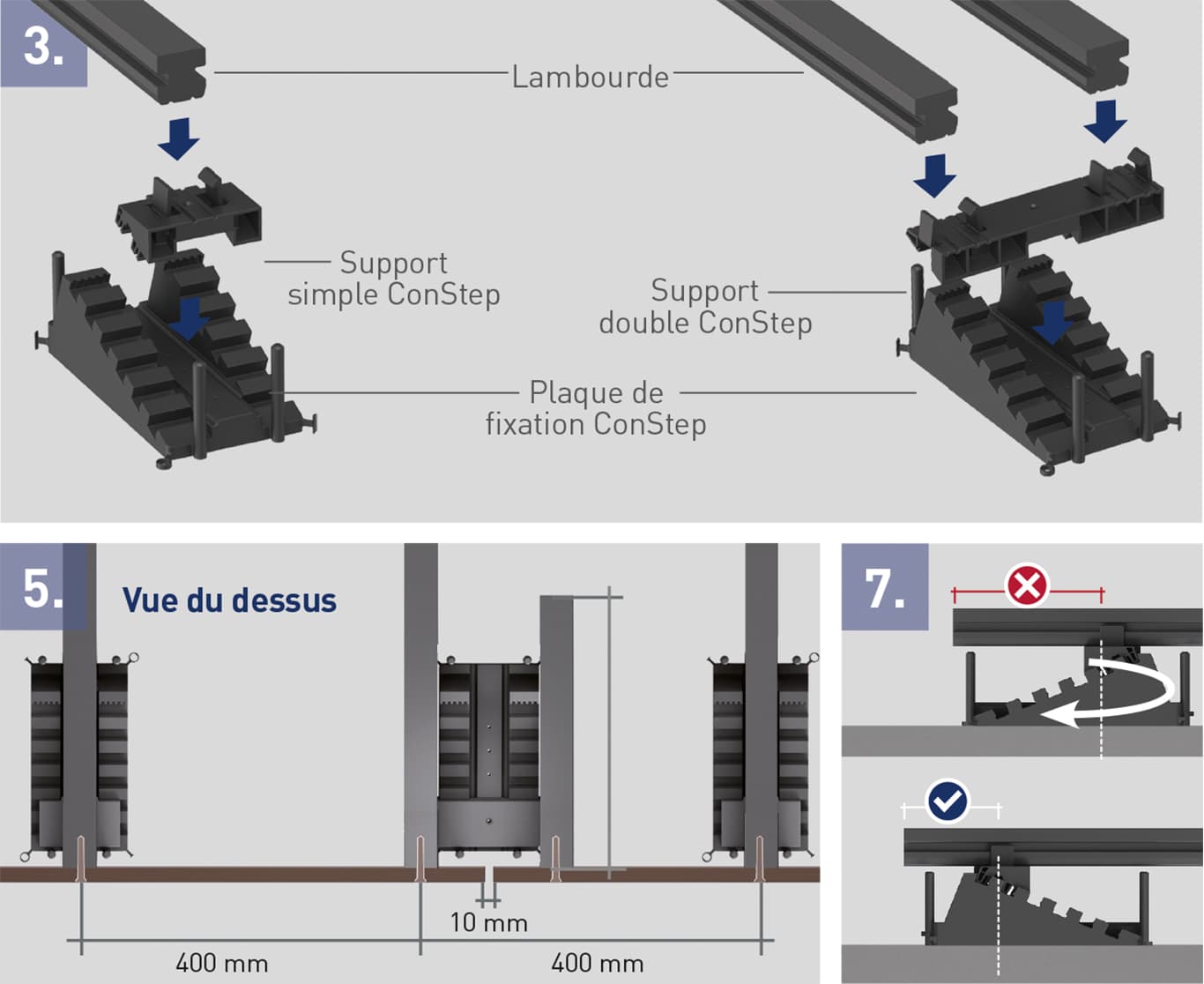 Réduire les surplombs autant que possible. Pour cela, tourner la plaque de fixation ConStep si nécessaire.