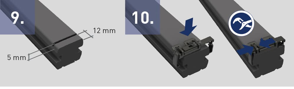 Poser la dernière lame et la fixer avec le clip de bord. Percer un avant-trou pour la vis du clip de bord et serrer avec un couple de serrage moyen.