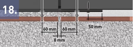 Installation des baguettes de bord voir les points 16 et 18 pour l‘installation avec une bordure en béton.