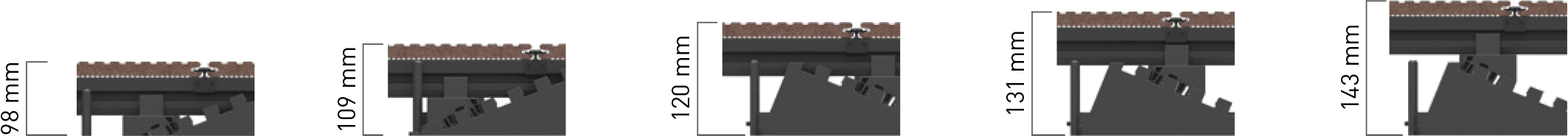 - Surplomb maximal des lames au-delà du dernier élément de la structure porteuse : 50 mm