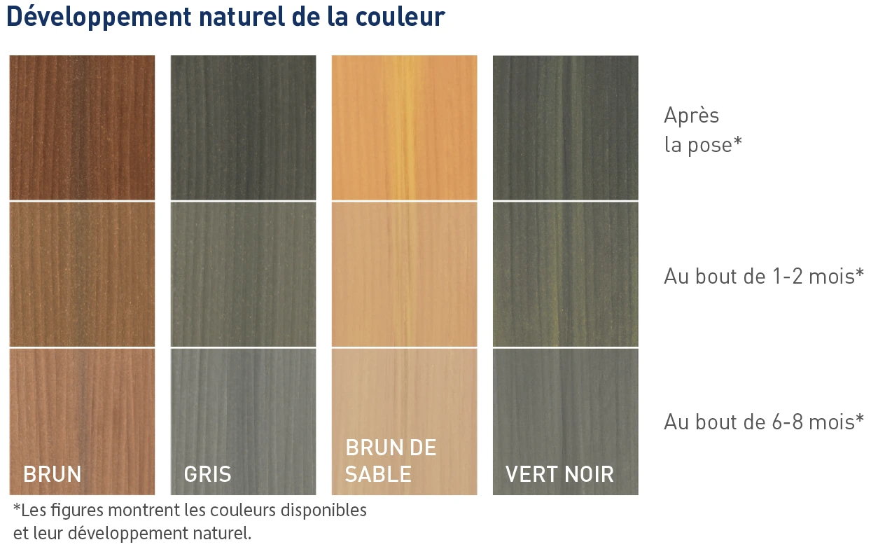 Votre terrasse vit - et c‘est très bien comme ça ! Ne vous inquiétez pas pour les traces d‘usure ou pour ce que l‘on appelle les «frottements» dus aux meubles. Les conditions météorologiques font généralement disparaître les traces d‘usure et les taches d‘aliments de la surface des lames. Alors installez-vous et détendez-vous ! Et si vous souhaitez quand même faire quelque chose, assurez-vous de nettoyer votre terrasse régulièrement. Les traces d‘usure se feront moins fréquentes.