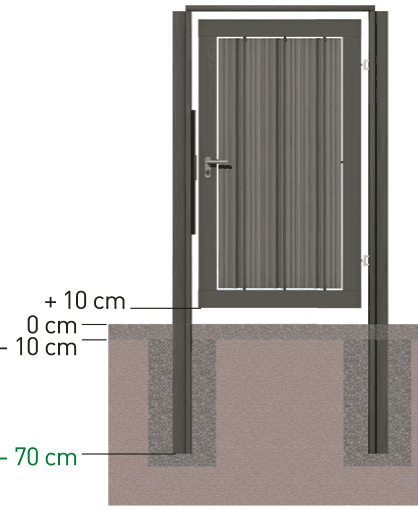 - Do montażu śrubowego na płycie podstawowej stosować wyłącznie słupek o długości 2,20 m. Nie wolno przekroczyć całkowitej wysokości montażowej 2 m (górna krawędź podłoża do górnej krawędzi słupka). Uwaga: wyższy montaż nie spełnia wymogów statycznych