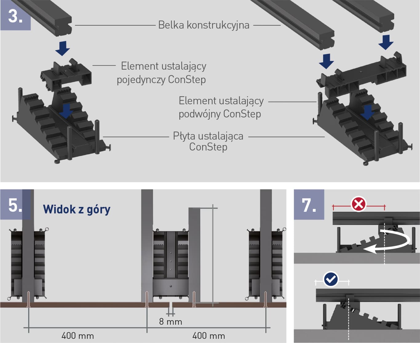 - Należy uwzględnić przy montażu związane z produkcją tolerancje długości, szerokości i grubości, i raz jeszcze sprawdzić wymiary podczas montażu